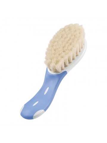 Suaves cerdas de pelo de cabra masajean suavemente la sensible cabeza de su bebé