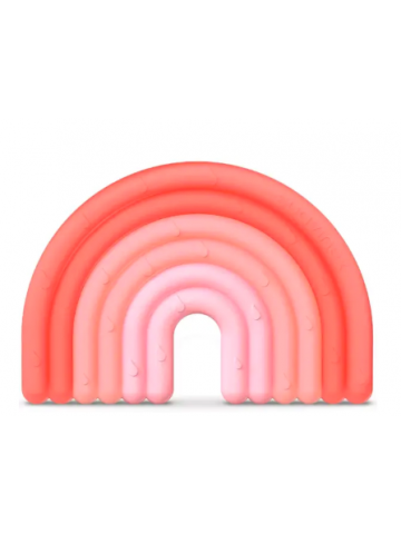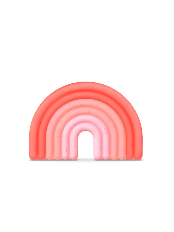 Mordedor de silicona con forma de arcoiris rosa, apto para bebés desde recién nacidos.