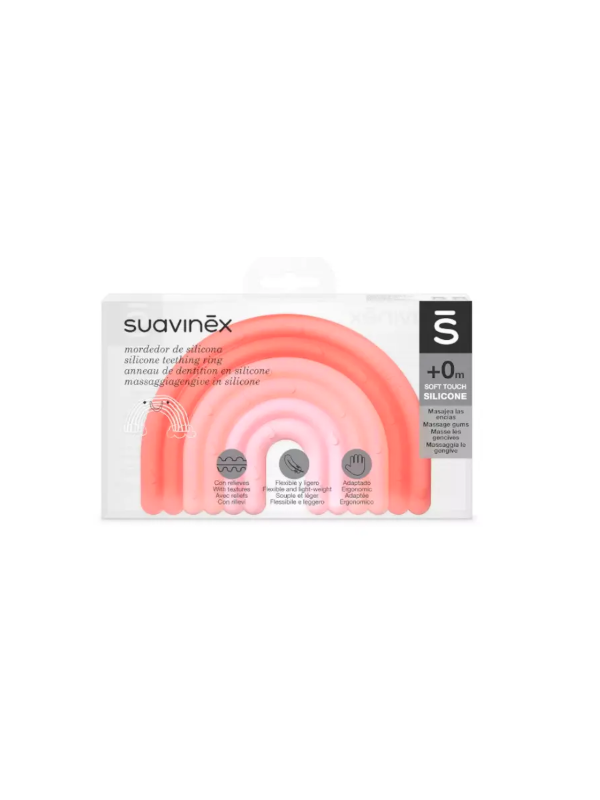 Suavinex Mordedor Silicona +0m Arcoiris Rosa
