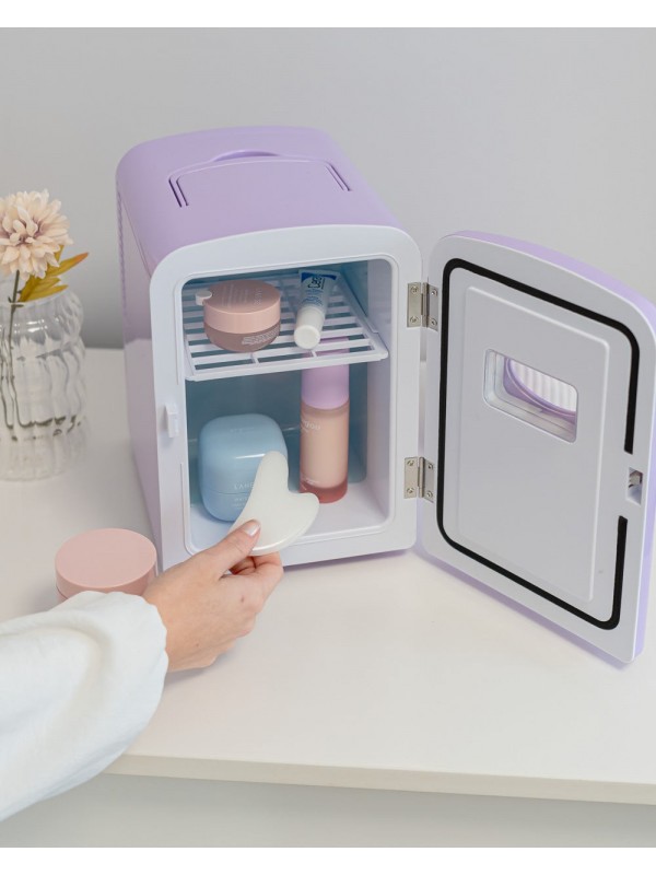 La mini nevera de 4 litros color morada combina un diseño retro y compacto perfecta para almacenar cosméticos, bebidas y pequeños snacks. Función de frío y calor. Sus baldas interiores extraíbles son perfectas para almacenar todos tus productos de belleza en diferentes formatos.