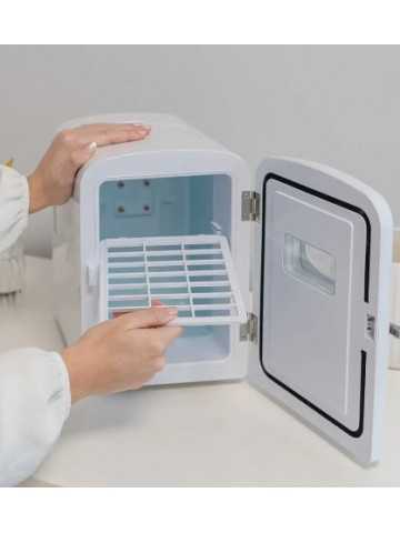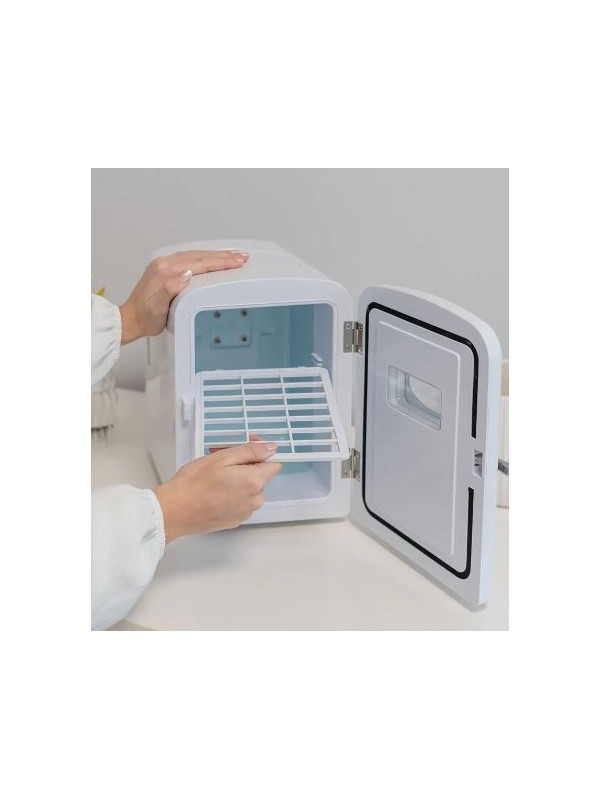 La mini nevera de 4 litros color blanca combina un diseño retro y compacto perfecta para almacenar cosméticos, bebidas y pequeños snacks. Función de frío y calor. Sus baldas interiores extraíbles son perfectas para almacenar todos tus productos de belleza en diferentes formatos.