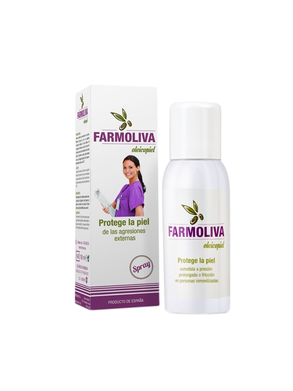Farmoliva Oleicopiel es una solución de ácidos grasos esenciales de Aceite de Oliva virgen Extra que favorece la protección de la piel, disminuyendo la deshidratación, aumentando la resistencia y protegiéndola frente a agresiones externos indicado para todo tipo de pieles. La composición de Farmoliva Oleicopiel se basa en las propiedades del Aceite de Oliva Virgen Extra el cual posee un alto contenido en omega, vitaminas E, A, K además de antioxidantes y olecanthal. Es ideal para el tratamiento de úlceras y escaras, descamaciones, pie diabético y pieles agredidas por radioterapias.