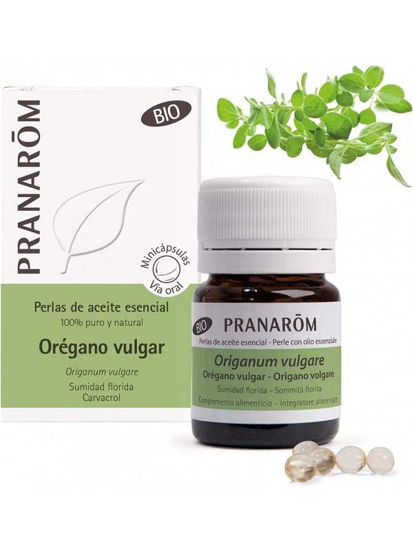 Las Perlas de Aceite Esencial de Orégano Bio del laboratorio Pranarom permiten disfrutar de los beneficios de la aromaterapia por vía oral. El aceite esencial de orégano vulgar se extrae por destilación de la sumidad florida. Cada perla contiene 1 gota de aceite esencial. Además de garantizar una dosificación precisa, tiene la ventaja de ser fácil de tragar y de tener un sabor neutro.