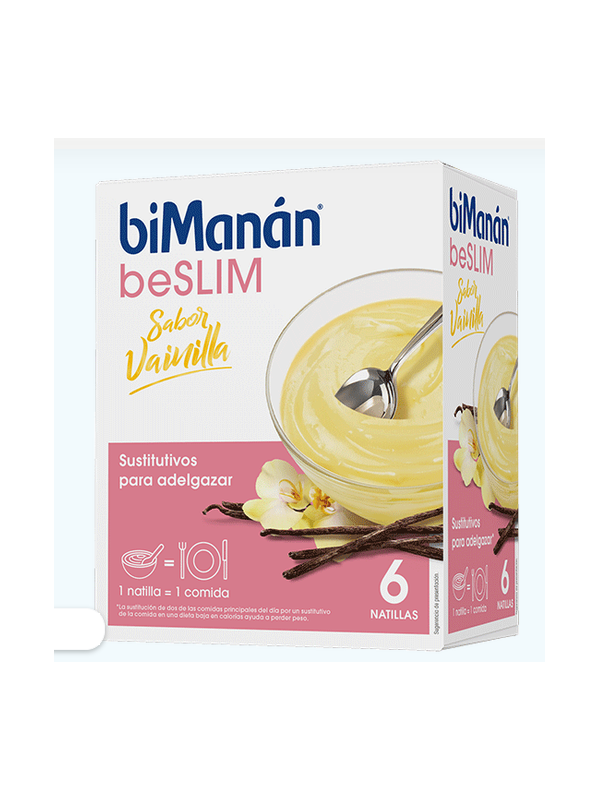 Cumple con tus objetivos de peso sin dejar de disfrutar de la comida con las natillas beSLIM. Recomendaciones: La sustitución de dos de las comidas principales del día por un sustitutivo de la comida, como parte de una dieta hipocalórica, ayuda a perder peso de forma segura. El consumo de uno de estos sustitutivos al día favorece el mantenimiento del peso alcanzado. Los productos sustitutivos de comidas deben consumirse dentro del marco de una dieta variada y equilibrada de bajo valor energético, junto con otros alimentos y un estilo de vida saludable