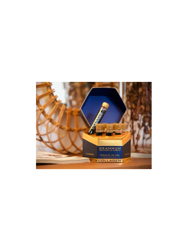 Complemento alimenticio a base de colágeno hidrolizado, hidrolizado de elastina y vitamina C, puede contribuir a la formación normal de colágeno para la función adecuada de la piel.