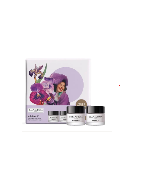 Bella Aurora Sublime 40 Pack Ahorro te ofrece un tratamiento de día y noche con acción antiedad, antioxidante e iluminador para el cuidado diario de tu rostro. Para el cuidado de día Bella Aurora Sublime 40 Crema Antioxidante Antiedad que revitaliza la piel del rostro, recuperando la piel la luminosidad y contrarrestando los signos de estrés y cansancio del rostro. Para completar el tratamiento, Bella Aurora Sublime 40 Crema Reparadora te ofrece una acción detoxificante para reducir arrugas y conseguir una piel hidratada y un tono uniforme.