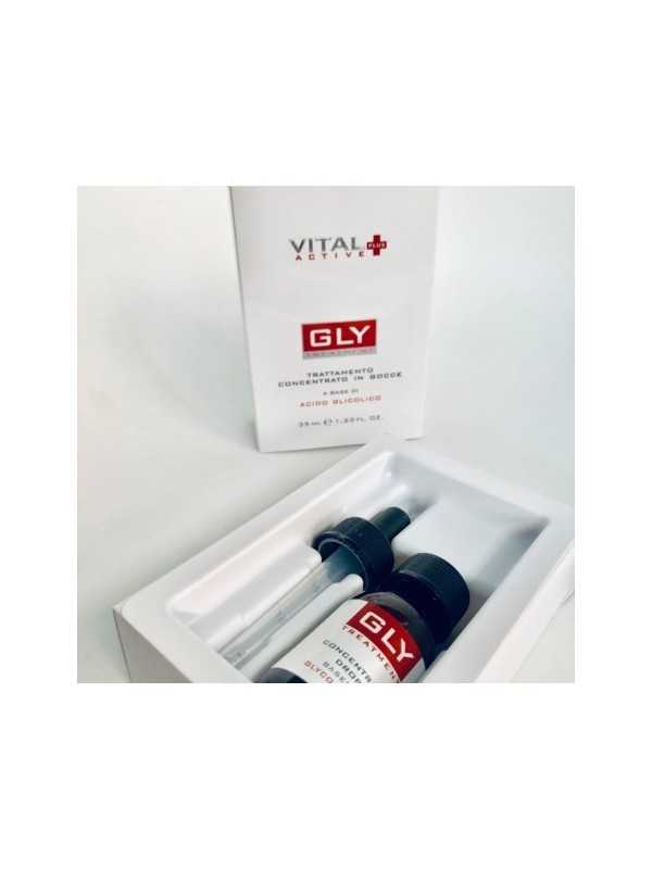 Vital Plus Active GLY gotas dermoactivas de Ácido Glicólico(un Alfa Hidroxiácido) y Células Estaminales indicadas para las pieles mixtas, pieles con impurezas y para las pieles maduras que promete renovar e hidratar la piel. Se trata de un tratamiento que aporta esplendor a la piel, previniendo de un modo eficaz la formación de marcas antiestéticas cutáneas.