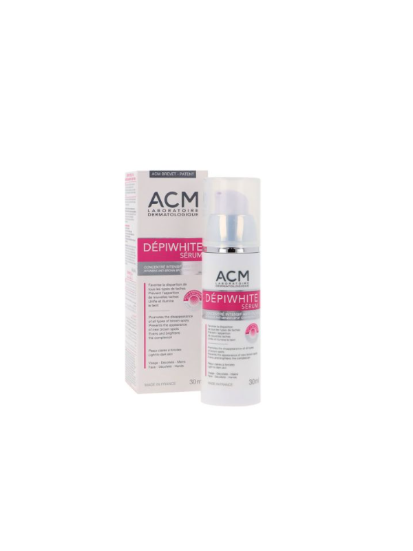 ACM Dépiwhite Sérum es un concentrado despigmentante de alta eficacia formulado para tratar todo tipo de manchas: manchas pigmentarias localizadas o difusas, como melasma, manchas solares, marcas de acné o hiperpigmentación postinflamatoria. Su tecnología combina activos reconocidos por su acción antimanchas con ingredientes hidratantes y calmantes que mejoran visiblemente la textura de la piel.