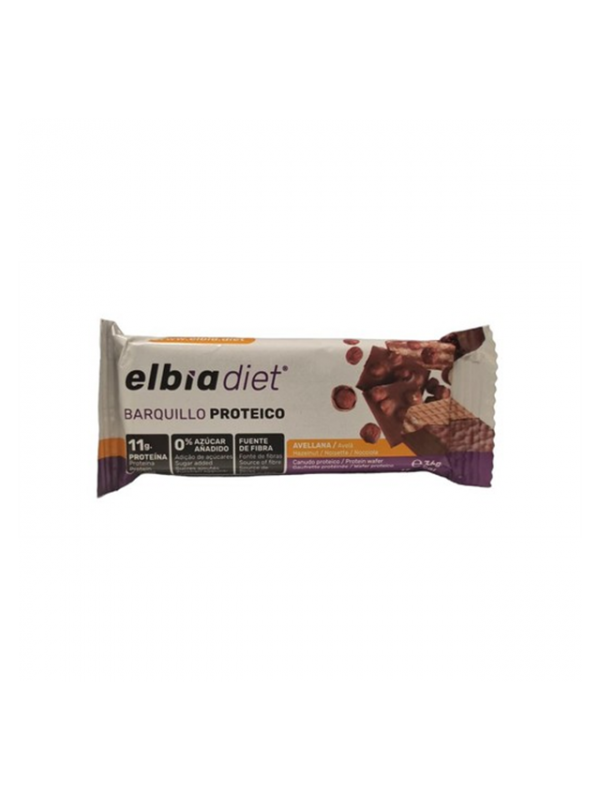 Barquillo sabor avellana recubierto de chocolate. Rico en proteínas, bajo en azúcar y alto contenido en fibra. Disponible también en sabor limón y sabor chocolate.