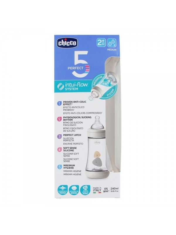 Biberón Plástico T Silicona Chicco Perfect5 Blanco 2M+ Flujo Medio 240 ml