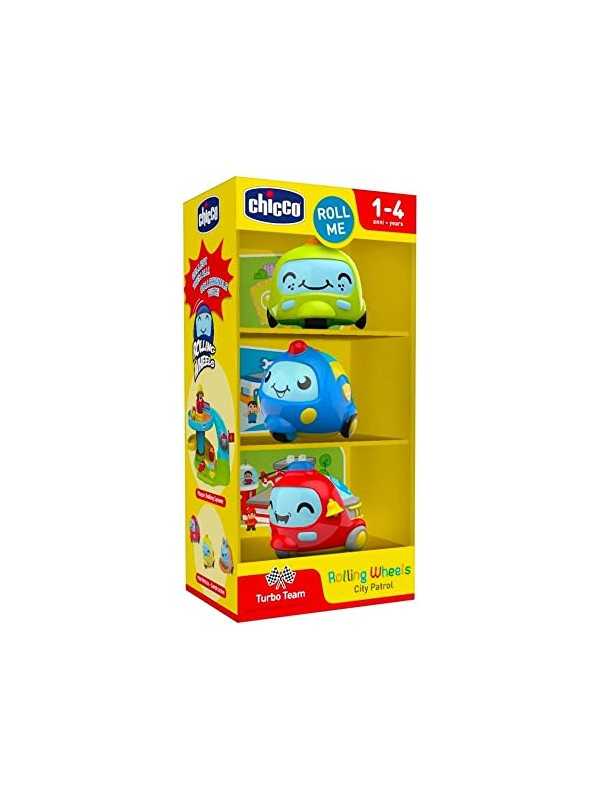 Rolling Wheels PATRULLA DE LA CIUDAD son 3 vehículos de mini bola para las primeras aventuras en la ciudad de los bebés. Gracias a su bola inferior estos vehículos poseen movimiento en cualquier dirección. El pack contiene 3 mini vehículos únicos con divertidas expresiones. Fácil de jugar: empujar, tirar, girar y girar sin parar. Compatible con juegos de Rolling Spinner y Parking TurboTouch.