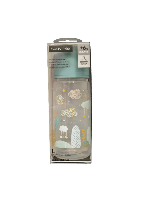 Capacidad: 360ml, perfecto para satisfacer el apetito de tu bebé en crecimiento y permitir tomas más prolongadas.