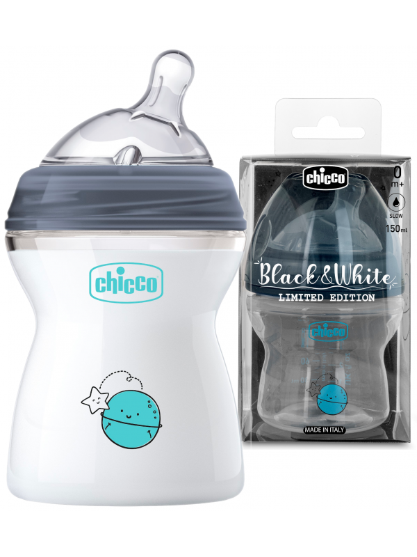 Chicco Biberón Azul 0m+ Edición Limitada Black and White 150ml Flujo Lento