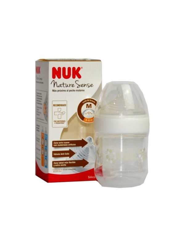 Los biberones NUK modelo Nature Sense, poseen una tetina con múltiples orificios finos que simulan los conductos mamarios del pecho. Proporciona un flujo natural y una agradable sensación al succionar, es extra suave y flexible que se adapta al paladar del bebé como el pezón materno. Base más ancha y flexible que facilita un enganche más natural.
