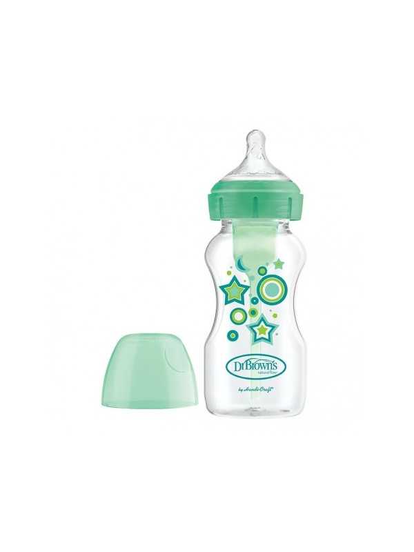 Biberón con tetina anti- cólicos que previene la ingesta de aire, reduciendo la irratabilidad, el flujo y los cólicos.