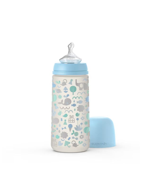 El biberón tetina anatómica azul, 360 ml de Suavinex está fabricado a base de polipropileno con una tetina anatómica de silicona. Pertenece a la gama de biberones The New Classic de Suavinex. Este producto está avalado por la Sociedad Española de Odontopediatría.