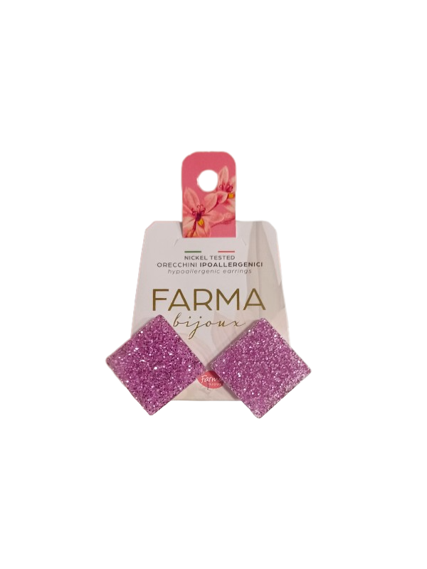 BIJOUX PENDIENTES BOTONES CUADRADOS ROSA PURP
