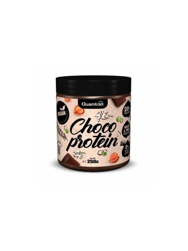 Choco Vegan Protein de Quamtrax Nutrition es un complemento nutricional elaborado a partir de crema de chocolate con avellanas enriquecida con proteínas procedentes de fuentes veganas. Aun conteniendo proteína vegetal, presenta un perfil de aminoácidos excelente ya que combina dos fuentes de proteínas distintas que se complementan a la perfección para lograr un aminoácido completo parecido al de las proteínas animales. Las dos fuentes de proteína de Choco Vegan Protein son los guisante y arroz.