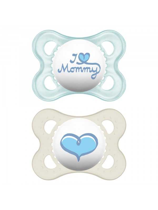 Chupetes con tetina de silicona para bebés de 0 a 6 meses. Con un diseño ortodóntico, este chupete es especialmente suave con la piel, gracias a sus amplias áreas de ventilación y menos puntos de contacto.