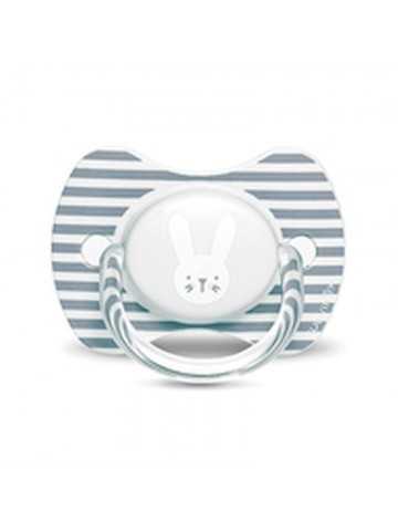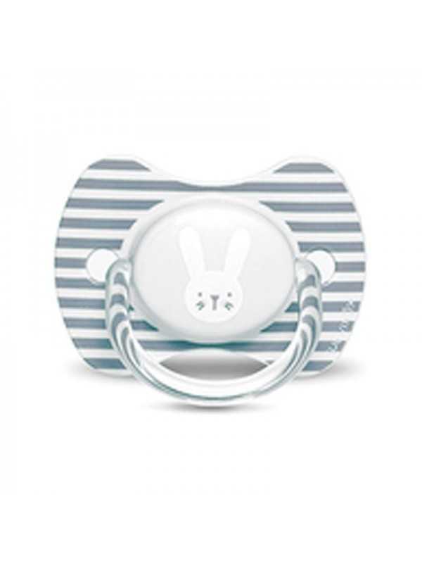 Chupete Premium con tetina anatómica silicona 6-18m. Su forma imita la forma del pezón materno durante la succión, adaptándose perfectamente al paladar.