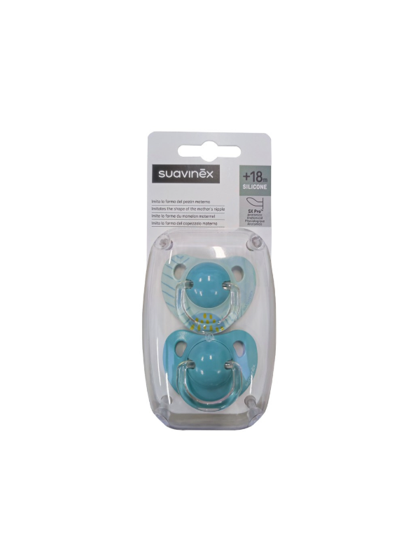 Chupetes con tetina fisiológica SX Pro de silicona que respetan el desarrollo bucodental del bebé.