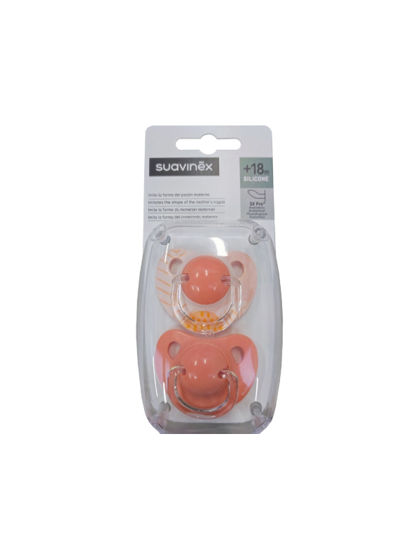 Chupetes con tetina fisiológica SX Pro de silicona que respetan el desarrollo bucodental del bebé.