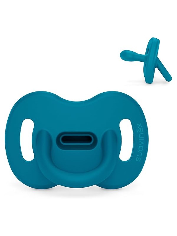 De forma simétrica, da igual de qué lado se coloque el chupete y no pasa nada si el bebé le da la vuelta, siempre queda bien colocado.