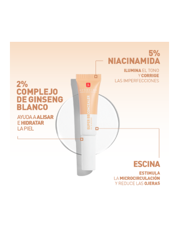 SUPER BB CONCEALER es un corrector de alta cobertura con un acabado natural que va más allá de simplemente disimular: su fórmula cremosa e hidratante, enriquecida con un 5% de Niacinamida, no solo cubre perfectamente ojeras e imperfecciones, sino que también actúa para reducirlas día tras día. ¡Con eficacia clínicamente probada!