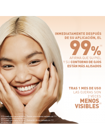 Además, con ácido Hialurónico que rellena las arruguitas y con lavanda y aloe vera que calman y descongestionan la zona del contorno de los ojos.
