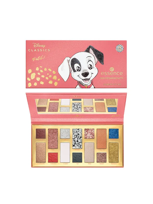Una paleta super pigmentada que contiene 14 sombras de ojos en diferentes tonos a juego inspirados en Bambi, Dumbi y Patch, el cachorro de 101 dálmatas.