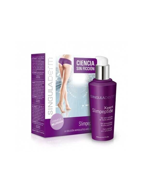Singuladerm Xpert Slimpeptide es un gel para combatir la celulitis y piel de naranja de una forma eficaz. La más alta precisión cosmética en la lucha contra la celulitis y piel de naranja. Su fórmula incorpora Silusyne™, un revolucionario principio activo elegido entre más de 50.000.000 péptidos como el más potente anticelulítico, y cafeína activa dosificada. Actúa desde el origen de la formación de la celulitis, evitando la adipogénesis (acumulación de grasa en los adipocitos) y favoreciendo el drenaje de líquidos, toxinas y grasas.