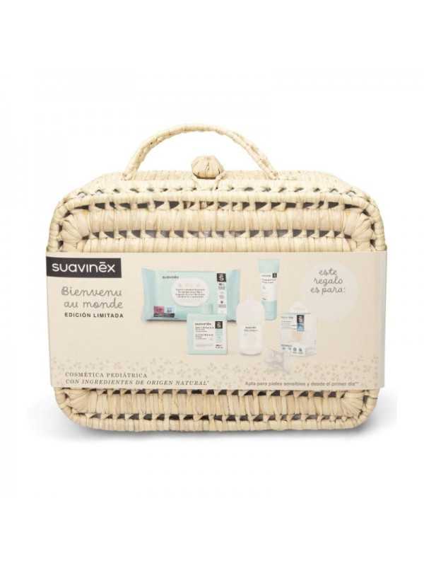 Suavinex Maleta de Nacimiento está tejida a mano con hojas de palma natural y es perfecta para guardar todo lo necesario para dar la bienvenida al bebé. Materiales 100% respetuosos con el medio ambiente.