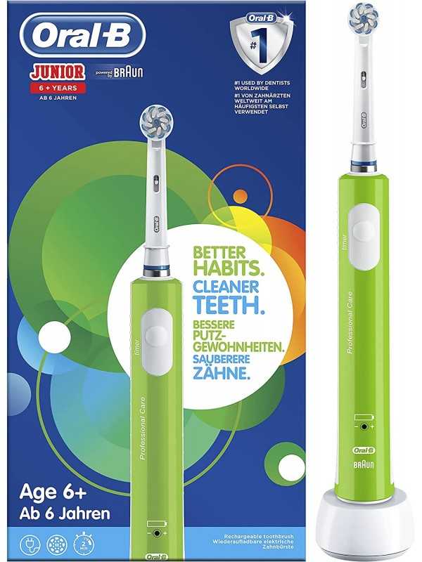 Oral-B Cepillo Eléctrico Junior. Oral-B es una de las marcas más conocidas en cuidados para la higiene bucal. Este cepillo esta pensado para niños a partir de los 6 años. Limpia con suavidad eliminando los restos de comida y la placa bacteriana de forma efectiva.