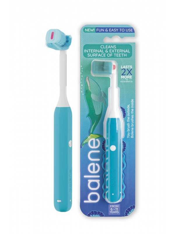 Balene limpia cara interna, externa y superficie de masticado de los dientes. Sus filamentos de nueva generación son suaves y delicados para las encías de los niños.