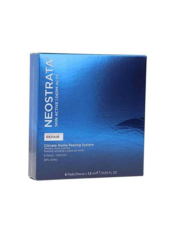 Modo de empleo: Deslizar suavemente el disco concentrado por el área a tratar, incidiendo en las zonas más problemáticas y exceptuando las de extrema sensibilidad como el contorno de los ojos y los labios. Dejar actuar 15 minutos y retirar con abundante agua. Si aparece algún síntoma de irritación (rojez, picor o escozor) retirar inmediatamente. Neostrata® Skin Active Repair Citriate Home Peeling System puede utilizarse 1 vez por semana, preferentemente por la noche; como tratamiento autónomo,