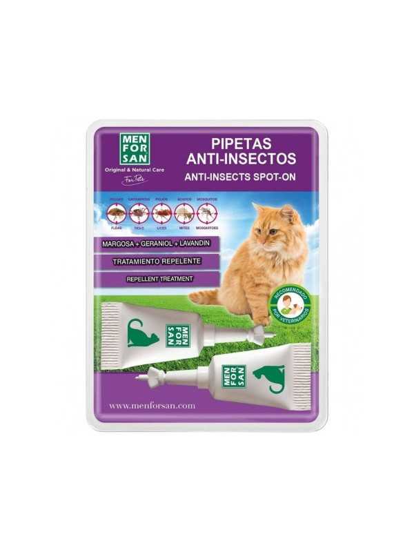 Pipetas anti-insectos para gatos que contienen 3 activos repelentes naturales MARGOSA, GERANIOL Y LAVANDINO que protegen de las infestaciones de parásitos externos pulgas, garrapatas, piojos ácaros y también de las picaduras de mosquitos