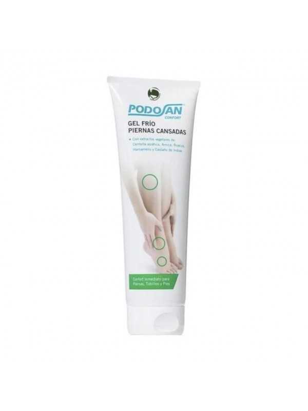 Podosan gel frío para piernas cansadas con acción global que restablece el confort y el bienestar de piernas, tobillos y pies gracias a la combinación de extractos vegetales de Centella asiática, Arnica, Ruscus, Hamamelis y Castaño de Indias. Este gel alivia y relaja las piernas cansadas de manera intensa y duradera, además de aliviar la pesadez de las piernas proporcionando una intensa sensación de frescor aportando una sensación de descanso de forma inmediata.