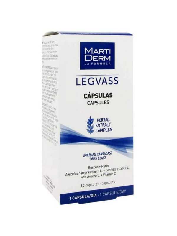 Complemento alimenticio con vitamina C, extractos de castaño de indias, vid roja, centella asiática, rusco y rutina.