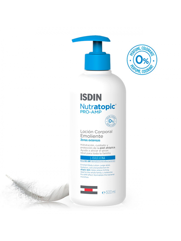 Loción corporal emoliente y protectora con L-isoleucina (pro-AMP) refuerza el sistema innato de defensa cutáneo. Hidratación, cuidado y protección de la piel atópica y/o extremadamente seca. Ayudan a combatir los signos de la piel atópica: picor, sequedad, descamación y enrojecimiento.