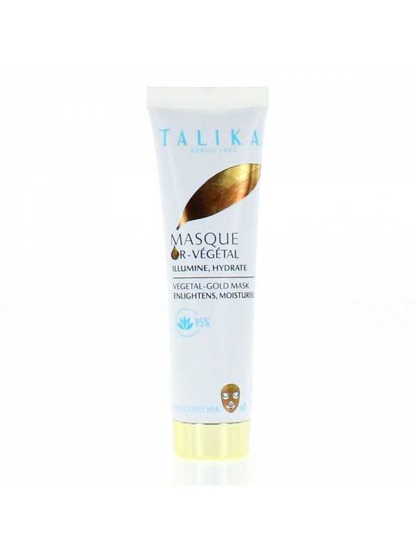 Talika Mascarilla Oro Vegetal 30 ml. Mascarilla de oro con notas seductoras de tiare compuesta de un 95% de ingredientes de origen natural. Ilumina el rostro en 10 minutos. Deja la piel suave y aterciopelada. Resultado visible al instante.