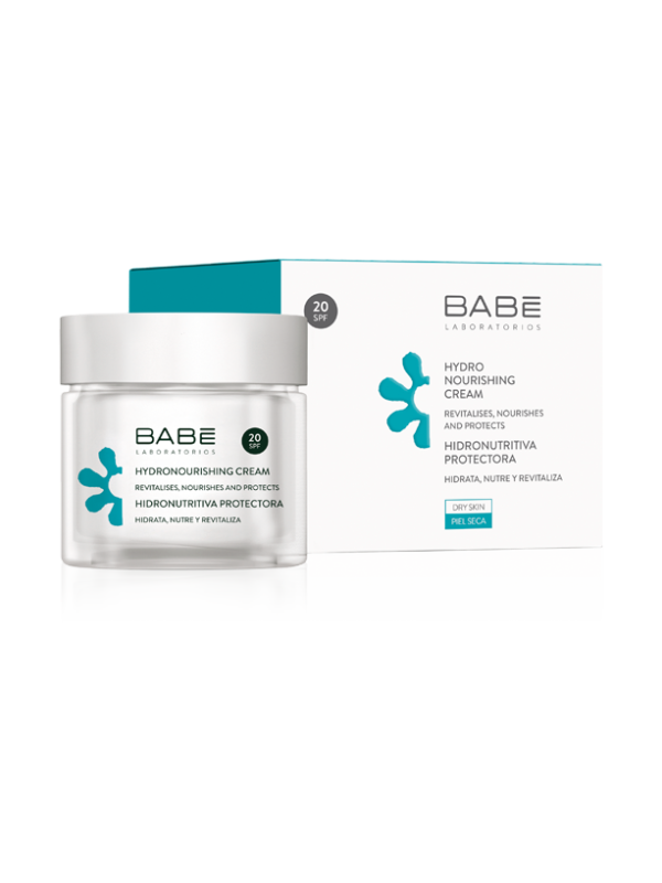 Babe Hidro-Nutritivo Protectora es una crema 3 en 1 que hidrata, nutre y protege. Como resultado se consigue una nutrición facial activa que mantiene la piel del rostro hidratada (24 horas) y protegida gracias a sus filtros solares con SPF20. Fórmula enriquecida con ácido hialurónico que mejora notablemente el nivel de hidratación, recuperando el aspecto fresco y luminoso del rostro. Con textura cremosa y fundente que evita la tirantez de la piel.