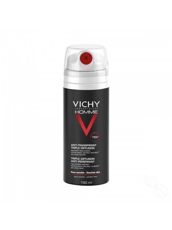 El desodorante antitranspirante de Vichy es ideal para los hombres que buscan una eficacia desodorante y anti-transpirante de larga duración, en cualquier situación con aplicador de alta precisión para un máximo control, anti olor, sin alcohol y anti manchas blancas. Apto para pieles sensibles. Acción que se prolonga durante 72 horas.