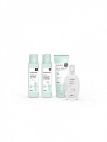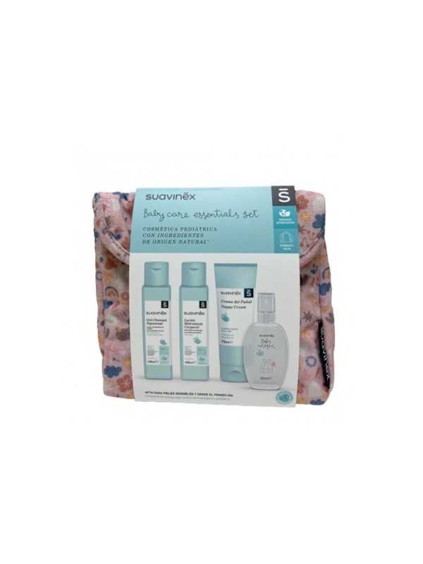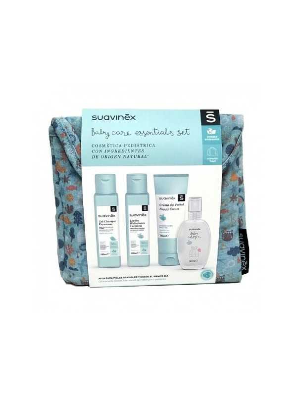 Baby care essentials set es un pack completo ideal para llevar de viaje ya que está compuesto por lo necesario para el cuidado del bebé un gel-champú espumoso, una loción hidratante corporal, una crema del pañal y una colonia. apta para pieles sensibles y desde el primer día.