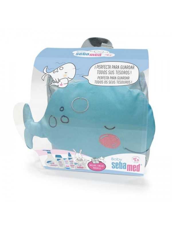 Sebamed Canastilla Mochila Ballena es un bolso que contiene en su interior productos que sirven para el cuidado y protección de la piel delicada del bebé. Todos los artículos que incluye son necesarios durante sus primeros días de nacido. Todos están elaborados a base de ingredientes naturales que ayudan a calmar y a relajar al pequeño. Esta mochila contiene: Gel de Baño Espuma 500 ml, formulado con extractos de plantas medicinales como camomila, ayuda a calmar, hidratar y proteger la delicada piel del bebé. Leche Corporal 200 ml, gracias a su complejo humectante y emoliente hace que se absorba rápidamente. Crema Balsámica 50 ml, previene la dermatitis del pañal y estimula el proceso de curación. Agua de Colonia 250 ml, evita la irritación y sequedad gracias a sus ingredientes protectores e hidratantes. No contiene alcohol. Toallitas Limpiadoras 72 unidades, ultrasuaves para la zona del pañal.