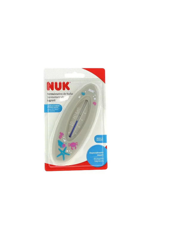 Nuk Termometro de Baño GrisEl termómetro de baño de nuk está fabricado con aceite de medición vegetal de colza, para que el baño sea más seguro.