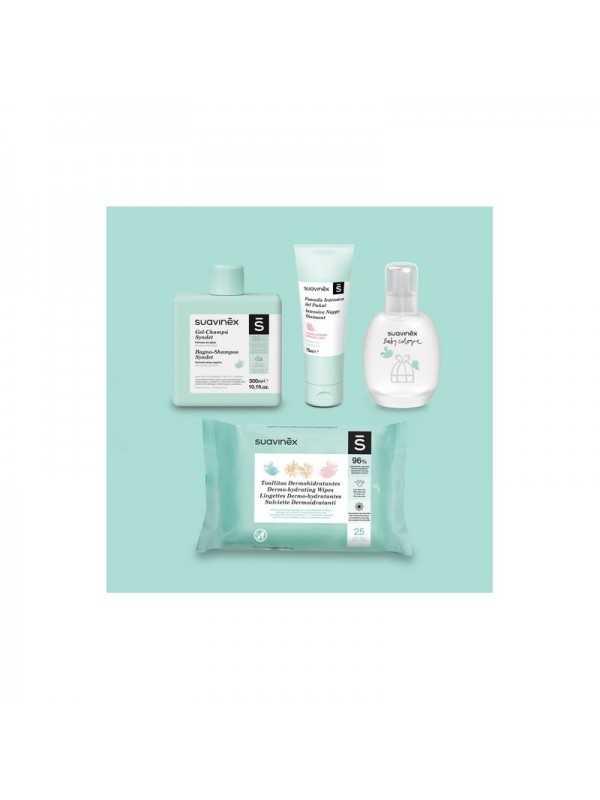 Gel Champú Syndet 300ml; Pomada intensiva del pañal 75ml; Suavinex Baby Cologne; Toallitas Dermohidratantes 25uds.