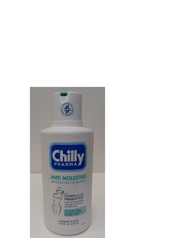 Cuida cada día de tu zona íntima con Chilly Molestias. Está enriquecida con complejo prebiótico, que nutre la flora íntima y ayuda areforzar las defensas naturales . Ha sido realizada con un pH 7.5 extra delicado sobre la zona íntima. Reduce el 87% las molestias íntimas después de una semana de uso y disminuye el 94% la sensación de ardor.