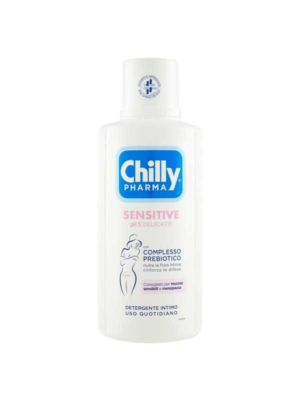 Chilly Pharma Sensitive está enriquecida con complejo prebiótico, que nutre la flora íntima y ayuda a reforzar las defensas naturales. Ha sido realizada con pH 5 delicado sobre la zona íntima. Aumenta un 45% la hidratación íntima , proporciona hasta 12 horas de confort íntimo y respeta en natural equilibrio fisiológico íntimo.