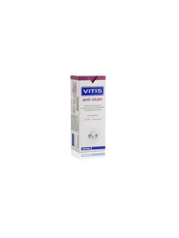VITIS® anti-stain es una pasta dentífrica formulada para prevenir las manchas provocadas por la clorhexidina sin comprometer la salud gingival. Con 1.450ppm de flúor para un uso diario y sabor a menta suave.