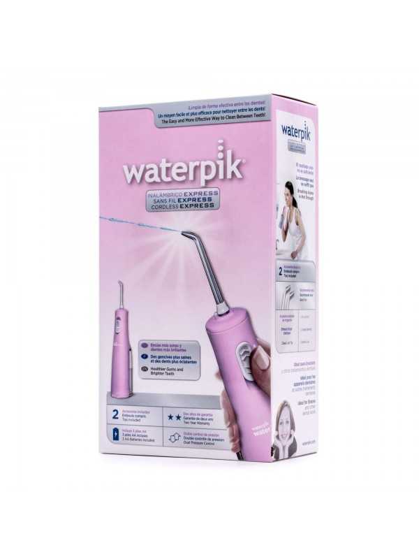El Irrigador Waterpik Inalámbrico Express WP-02 es un irrigador inalámbrico a pilas que asegura una higiene dental completa en cualquier momento y lugar. Presenta un diseño más ligero y portátil y gracias a su funcionamiento a pilas, no necesita ser enchufado a la corriente por lo que es ideal para baños con espacios reducidos o para su uso fuera de casa.